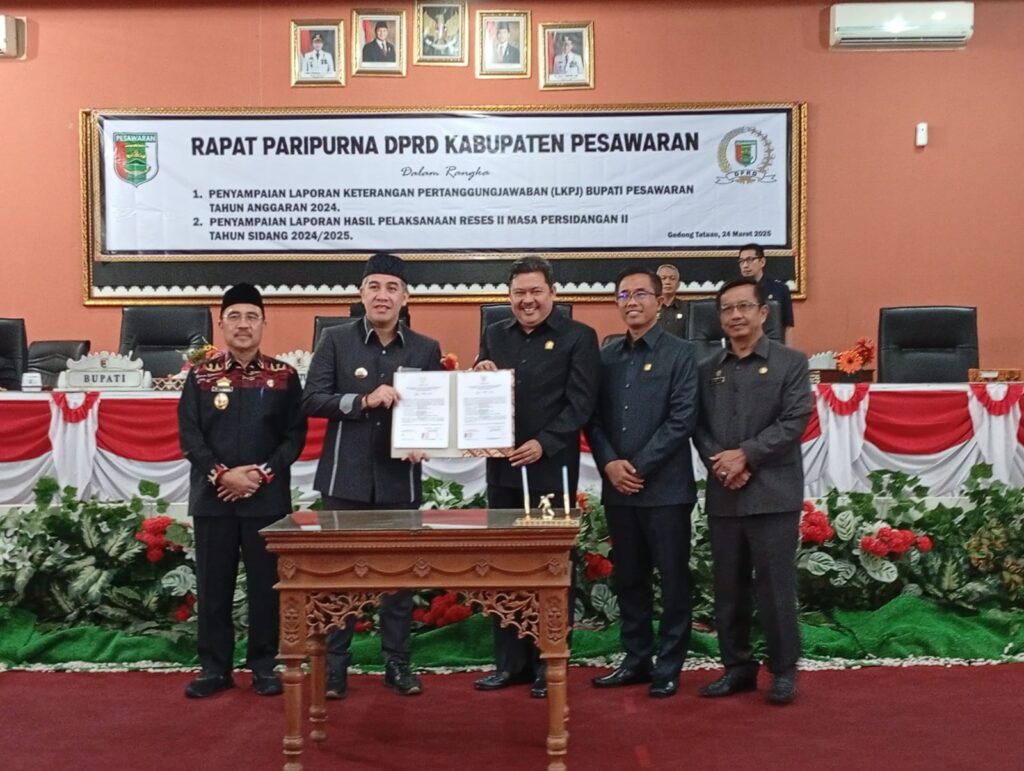 Pesawaran – Bupati Pesawaran Dendi Ramadhona, menyampaikan Laporan Keterangan Pertanggungjawaban (LKPJ) Tahun 2024 dalam Rapat Paripurna DPRD Kabupaten Pesawaran yang berlangsung di Ruang Sidang DPRD pada Senin, 24/3/2025.